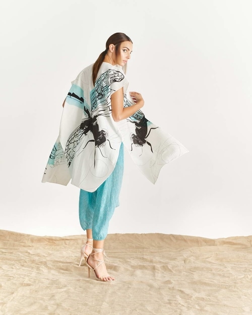 IGOR used this delicate symbol of nature - the designer’s eternal inspiration, as he says - to adorn his Spring/Summer 2019 collection. It is by textile artist Ivana Zanko interpreted through graphic screen prints, ink jet textile print, and embroidered jet beads with feather details on textiles and plexiglass.